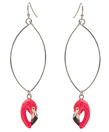 Oval Drop Flamingo Head Earrings